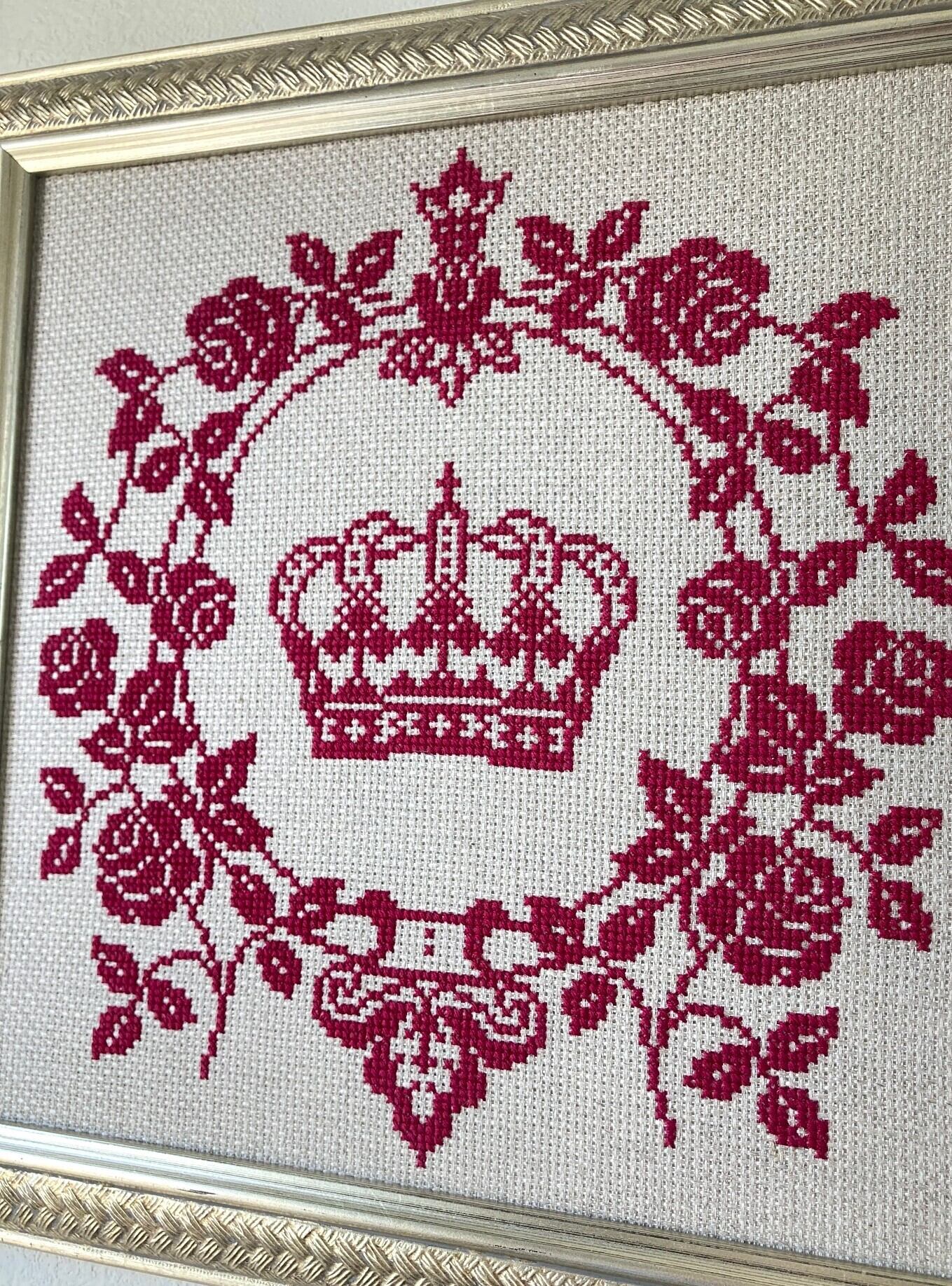 未晒し色の生地に深紅の刺繍糸を選び、クラシックな雰囲気を出しました。