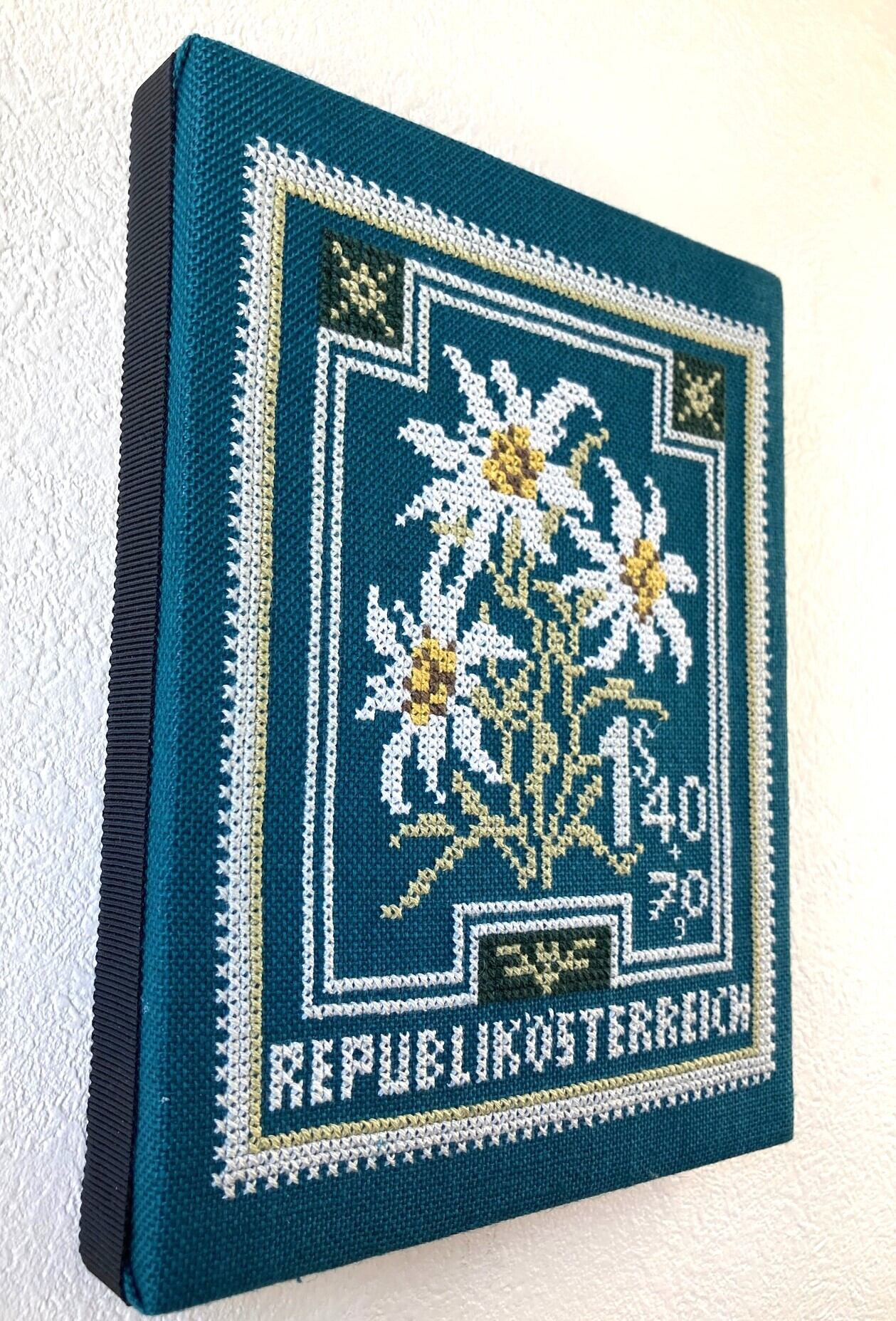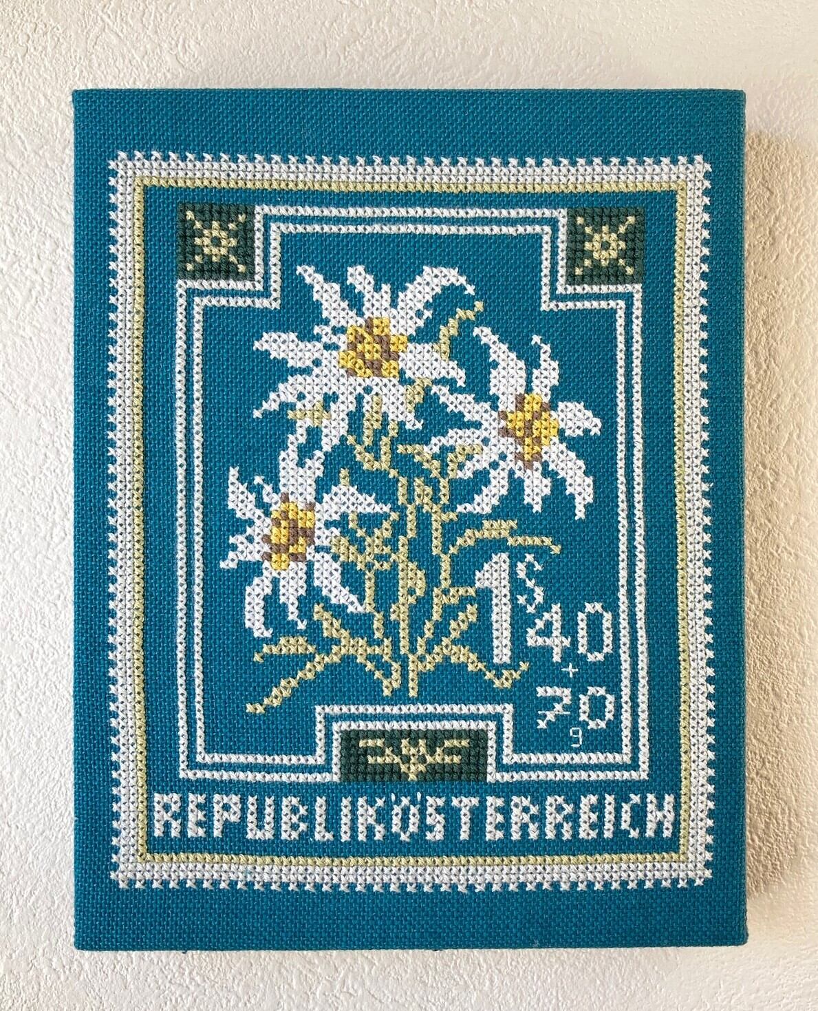 オーストリアの国花 エーデルワイスをモチーフにした古切手にインスピレーションを得て図案を描きました。